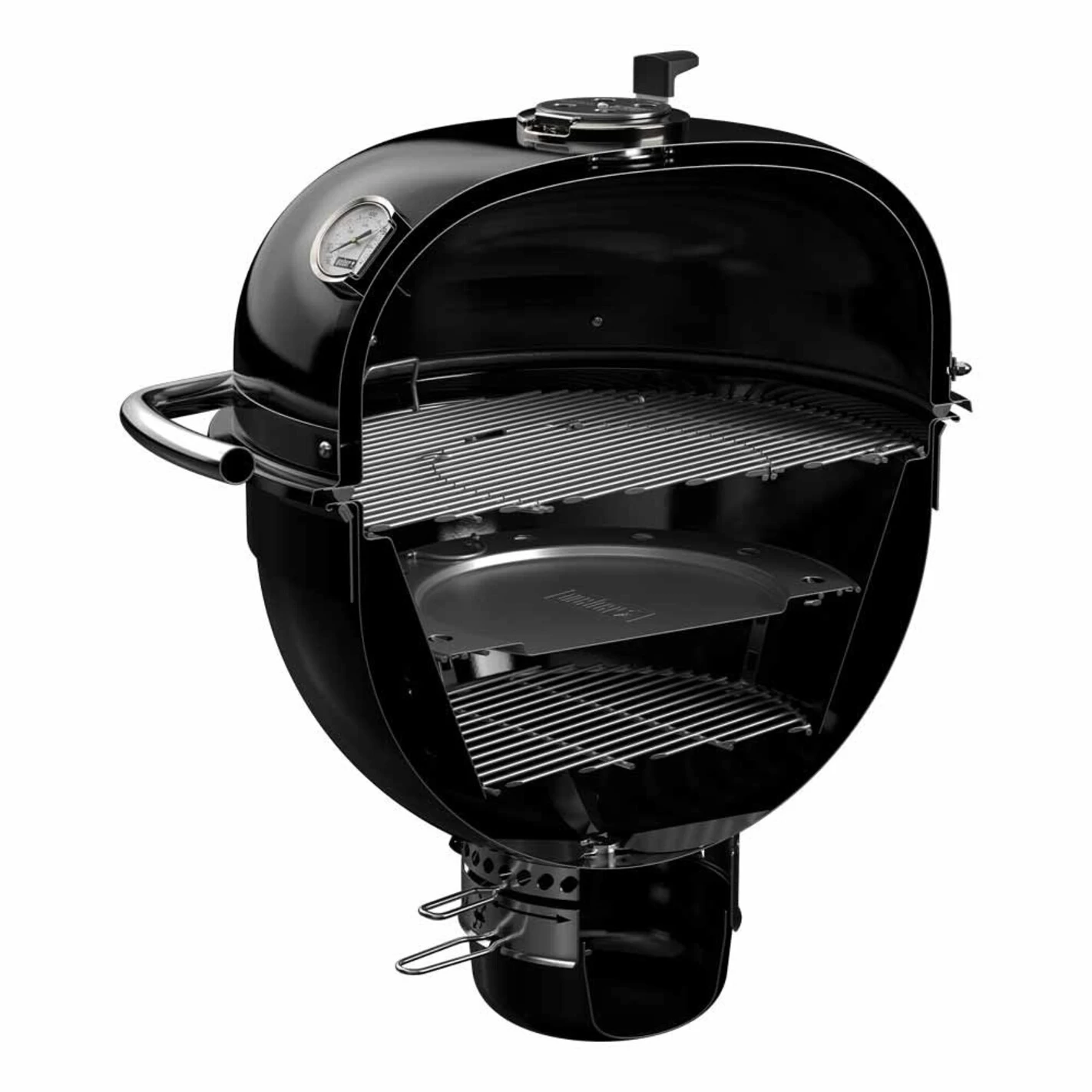 Ce n’est pas un secret, allumer le foyer d’un barbecue à charbon peut parfois être long et fastidieux mais c’était sans compter sur le clapet d’aération haut du barbecue Summit capable de s’ouvrir complètement pour un débit d’air maximal favorisant la prise des braise dans le foyer.