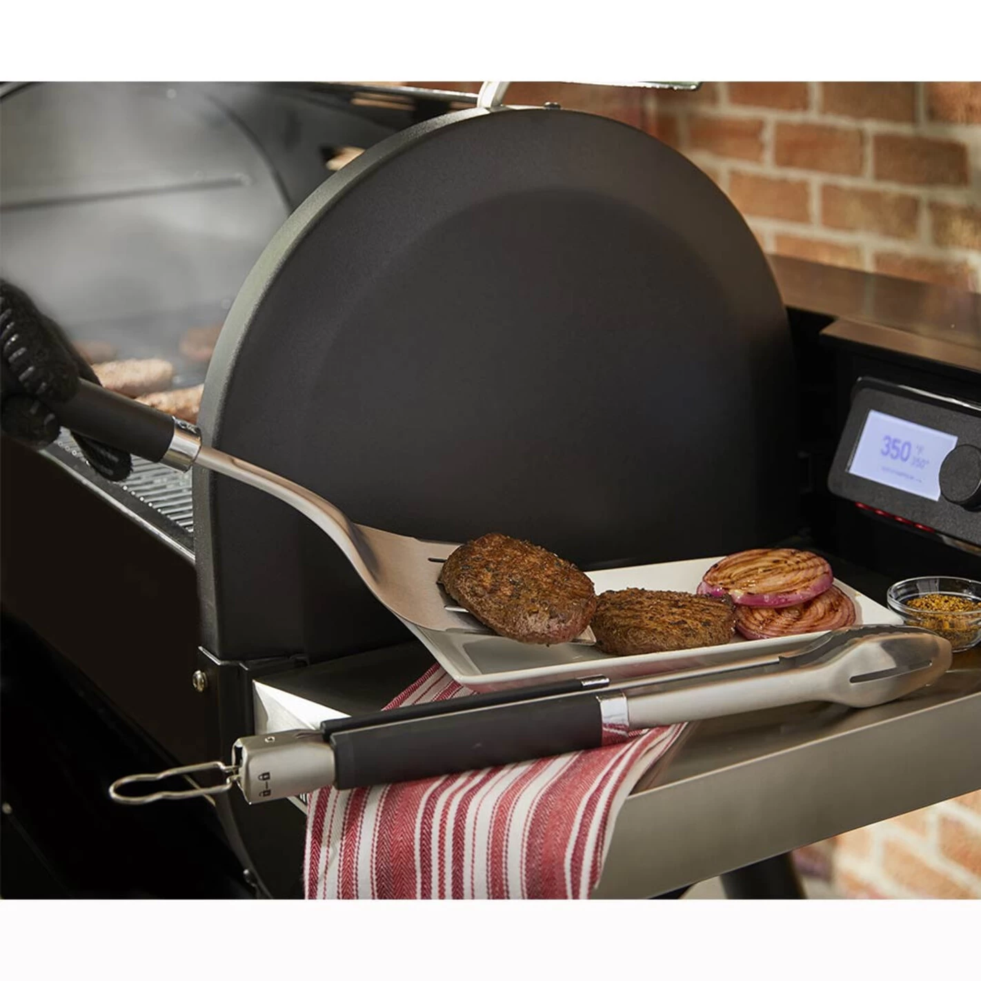 - Une accroche métallique permet de suspendre chaque accessoire sur votre barbecue pour les avoir à portée de main