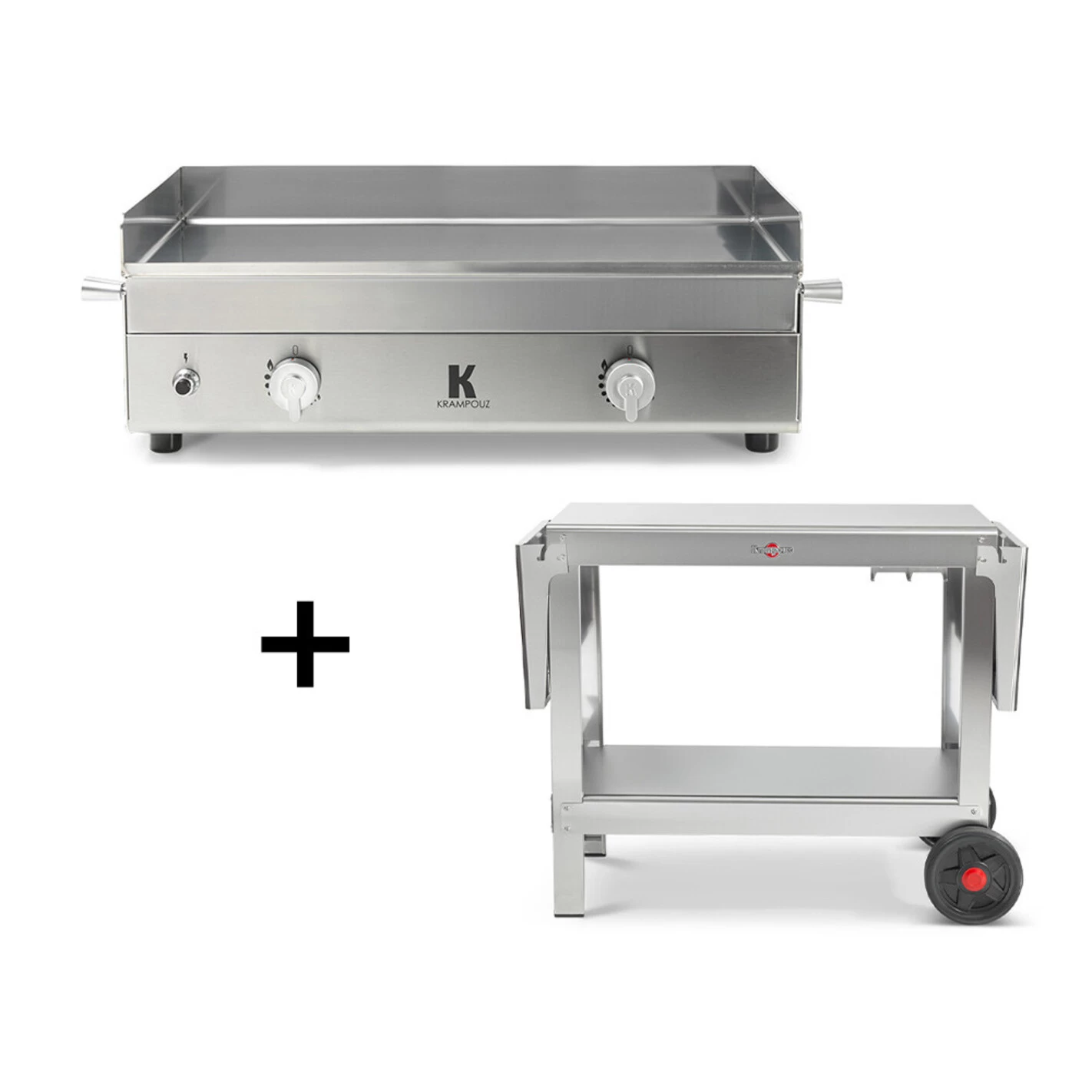 Design robuste et entretien facile, cette desserte pour plancha tout inox permet d’installer votre plancha pour une hauteur de cuisson idéale.