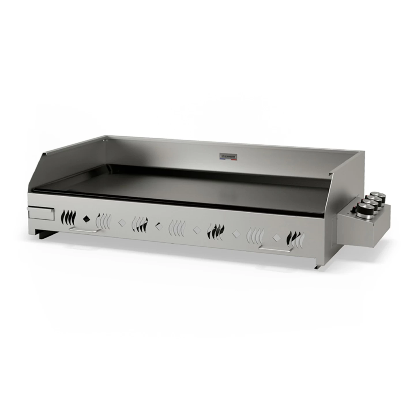 4 brûleurs en inox à haut rendement assurent une performance de cuisson inégalée et une montée en température rapide (moins de 10 minutes). Une puissance totale de 10 kW permet de préparer aussi bien des légumes à la plancha qu’une saisie des pièces de viande.